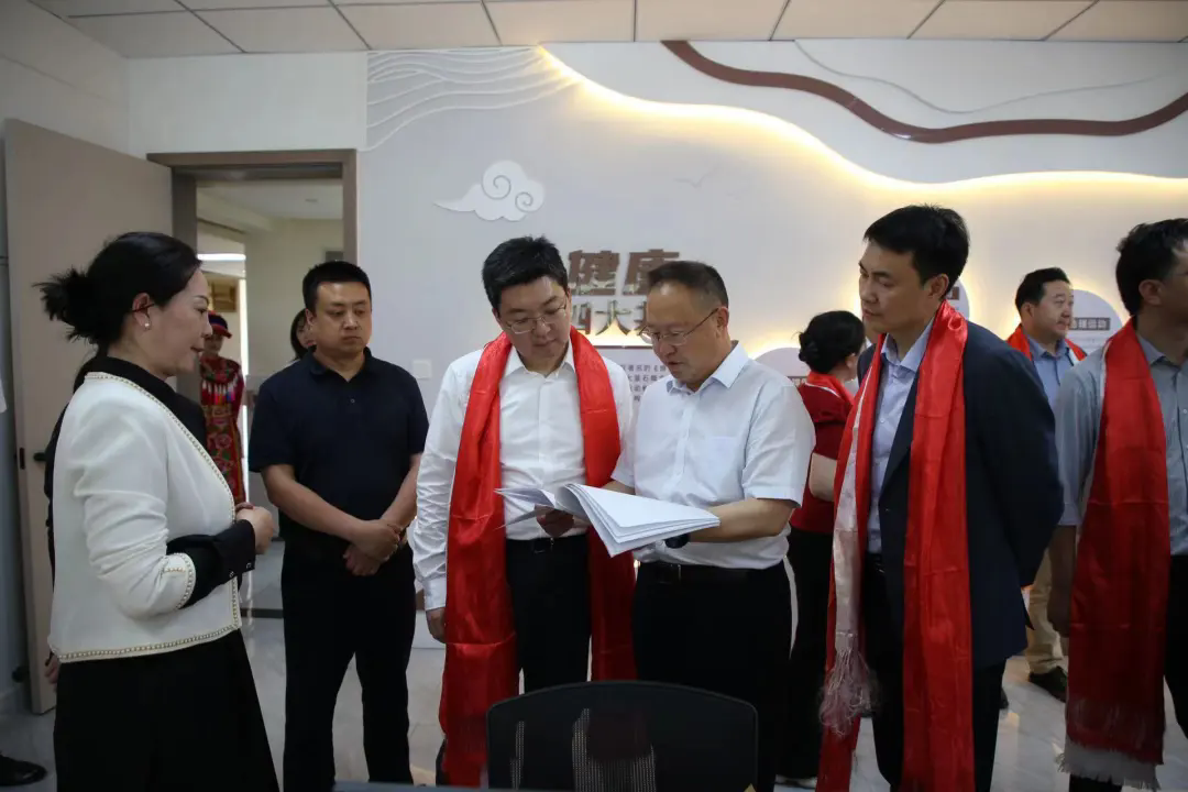 王树明带领县委领导、汶川县中医医院领导为通用医疗三六三医院一行献哈达表示欢迎,丁哲一行参观了医院院区。